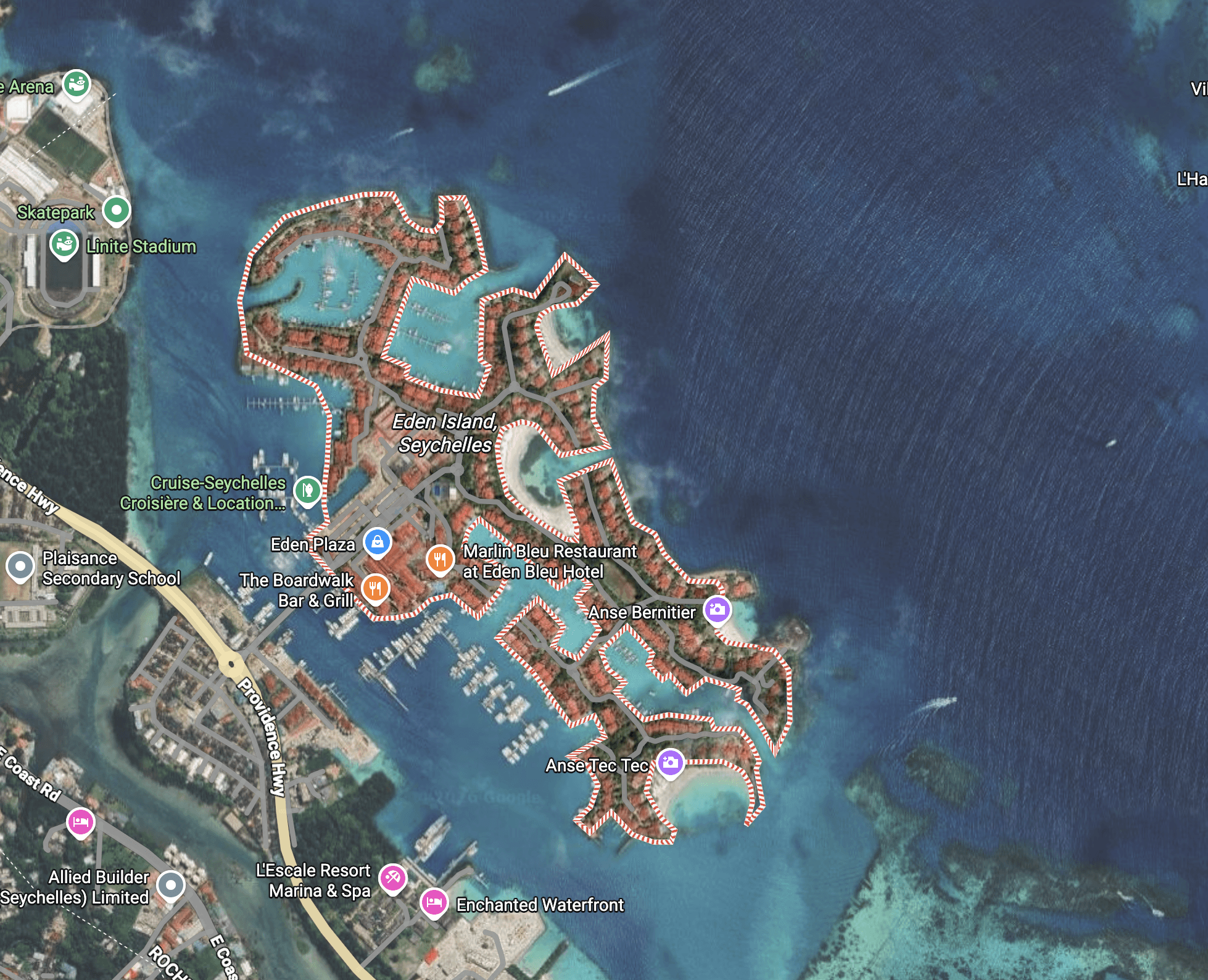 Approach via the marked channel from Victoria Harbour. Contact Eden Island Marina on VHF Channel 14 prior to entering the basin for berth allocation and docking instructions.