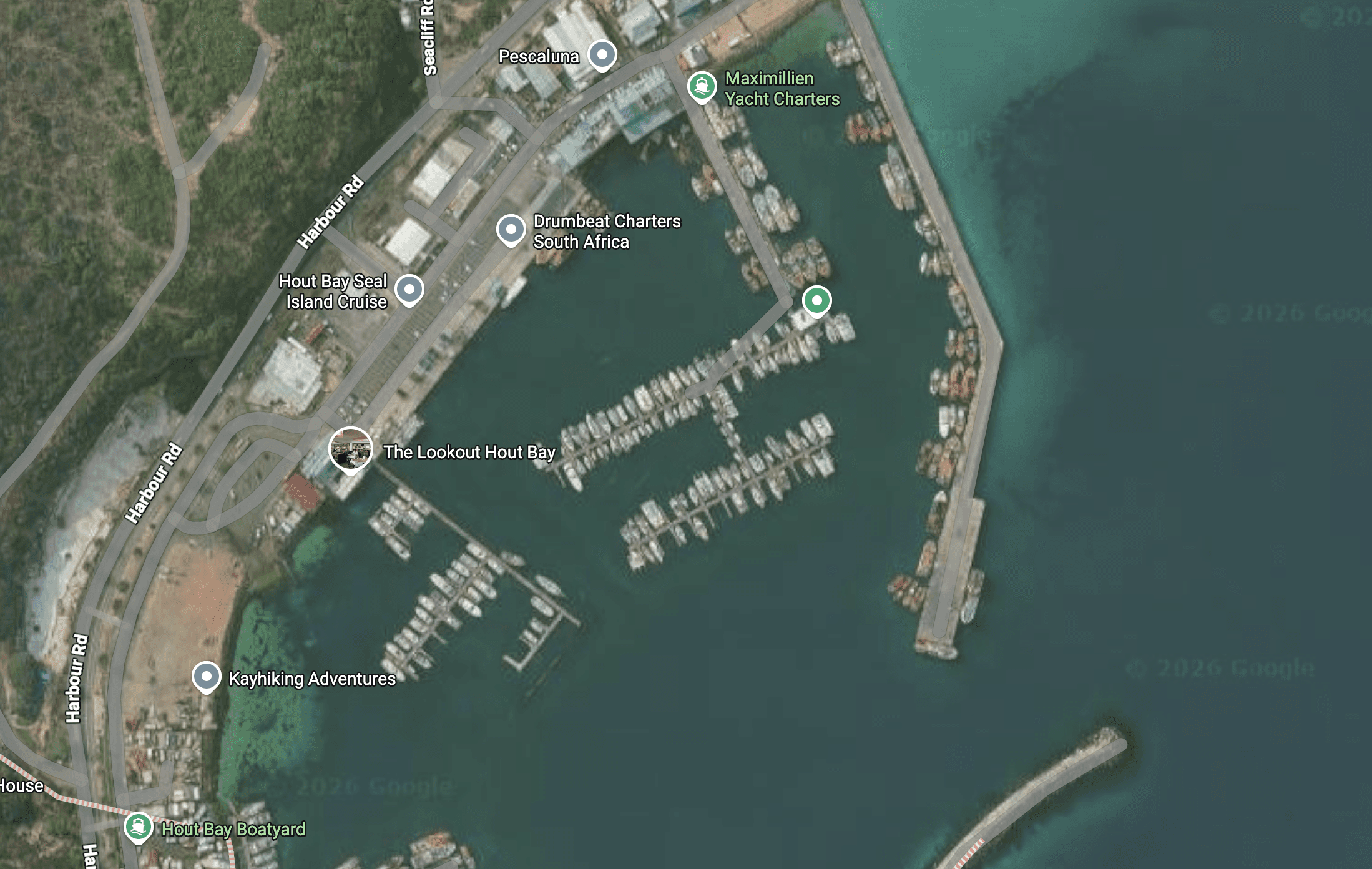 Approach from the south east. The harbor entrance is marked by a port hand buoy (N 34° 03.0' S, E 18° 19.7' E). Contact marina office on VHF 71 for berth assignment.